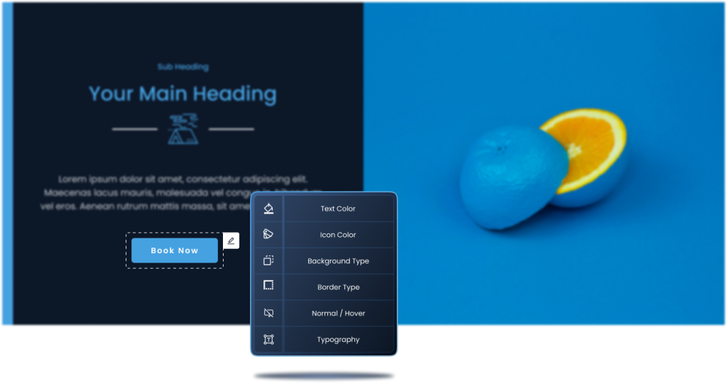 عنوان، زیرعنوان و توضیحات اضافه کن و با افکت هاور، تایپوگرافی دلخواه و امکانات دیگر، استایلش رو شخصیسازی کن.